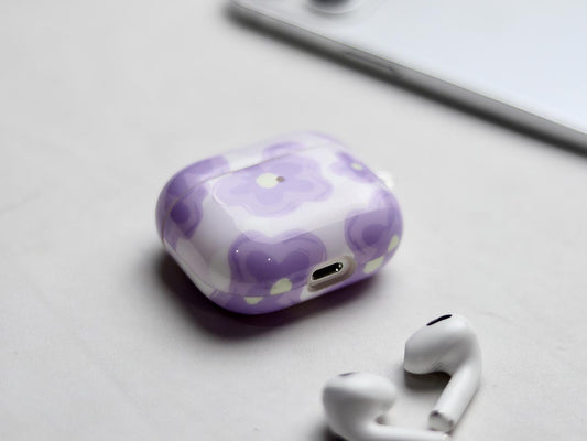 Purple Flower Airpods with Keychain.