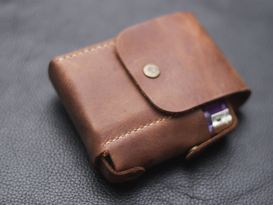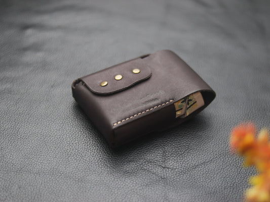 Genuine Leather Cigarette Case Side Lighter Pocket